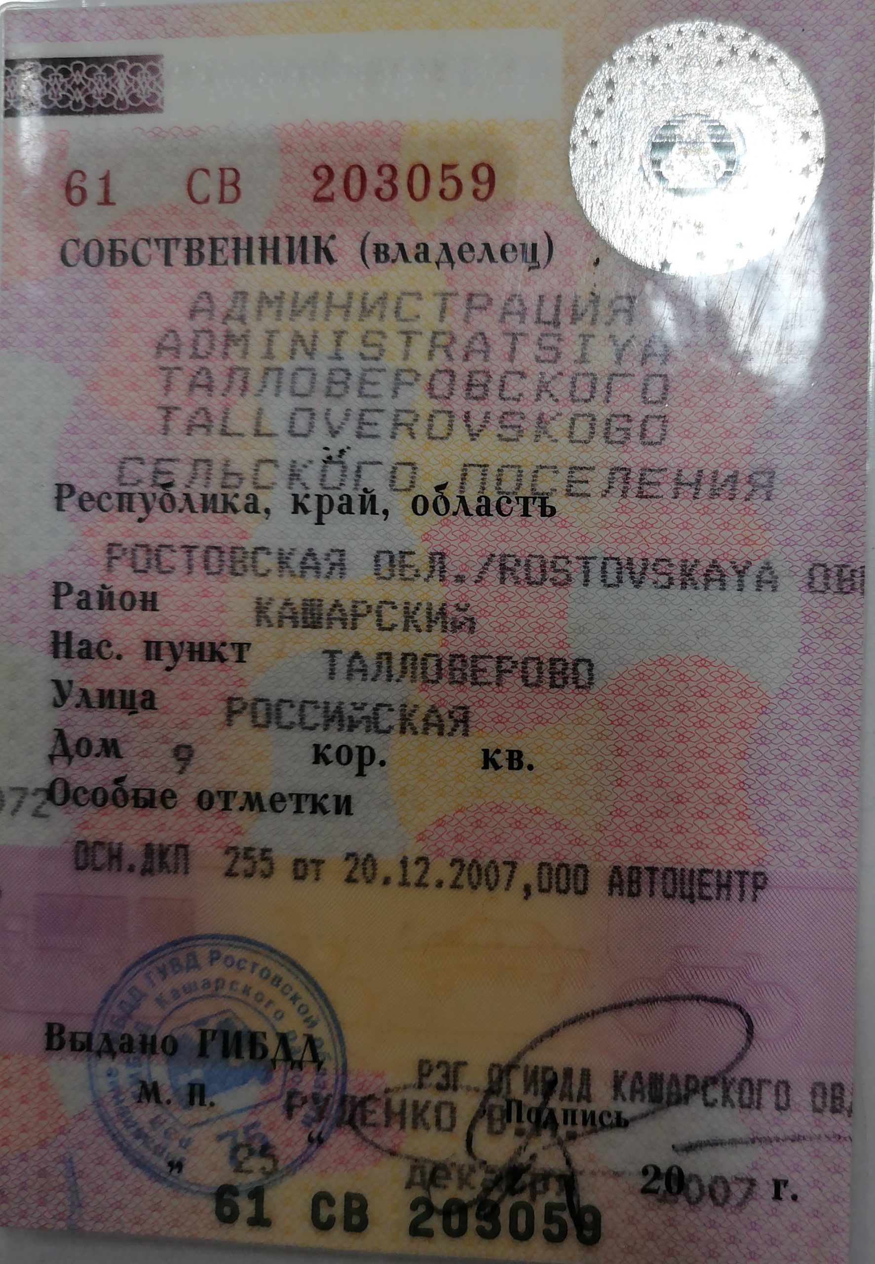- Паспорт транспортного средства